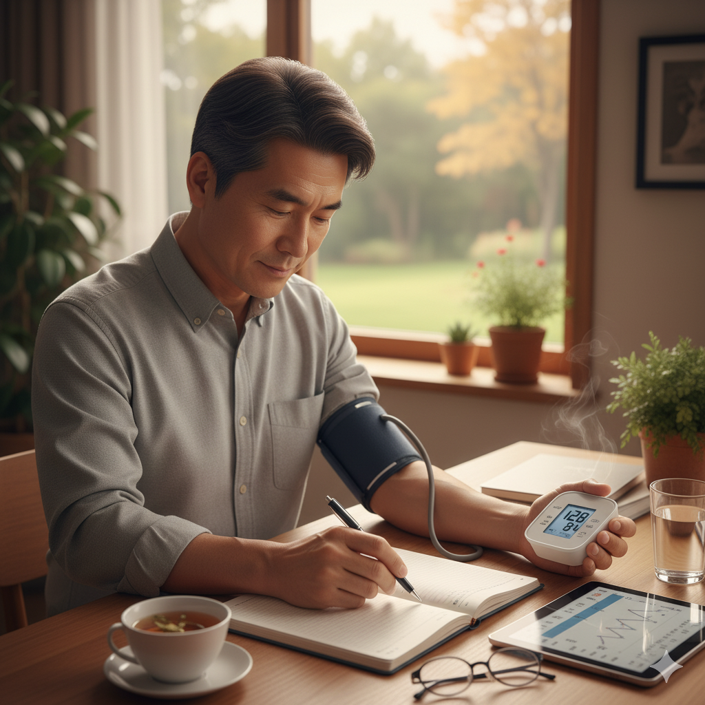 • 실천 가이드: 아침, 저녁으로 정해진 시간에 혈압과 혈당을 측정하고 기록하여, 평소보다 수치가 급격히 달라지면 주치의와 상담해야 합니다. 저혈압 환자는 침대에서 갑자기 일어나지 말고, 잠시 앉았다가 천천히 일어서는 습관이 중요합니다.