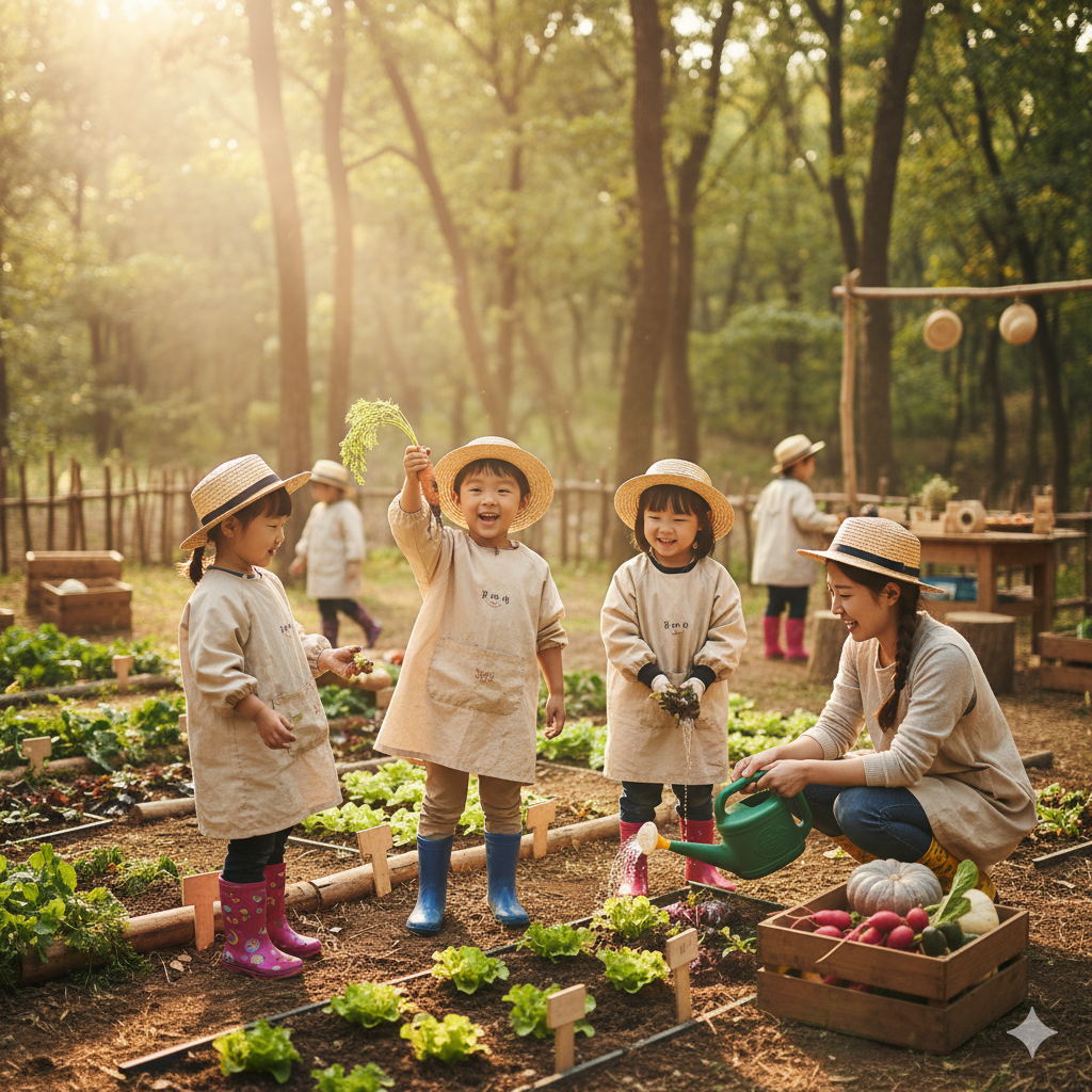 - 계절별 텃밭 체험 (봄 모종 심기, 가을 수확 등)